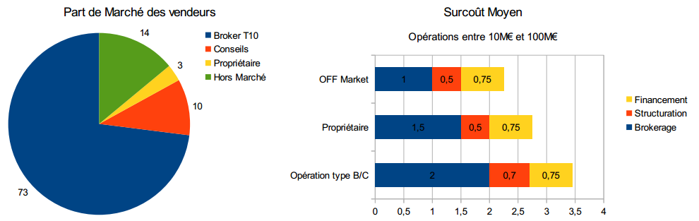 Nous pouvons retenir une définition simple comme première approche : par « off market », nous parlons d’actifs qui ne sont proposés ni par les « brokers » ou conseils traditionnels, ni par les propriétaires lorsque l’annonce de la mise en vente est large et non ciblée. Et nous constatons au travers de sondages, ainsi que de sources diverses, que pour la France, près des trois quarts des opérations dans le segment 10-100 millions d’euros sont réalisées par les dix principaux commercialisateurs du marché. Une proportion qui atteint près de 85 % lorsqu’on ajoute les conseils de toutes natures, notaires, banques d’affaires… Mais près de 15 % tout de même des opérations sont traités « off market ». Marginalement donc, des propriétaires procèdent à des ventes en direct. Le point important réside dans le fait que, pour des opérations comparables, un acquéreur économise près de 0,5 % (HT) de surcoût en « off market ».